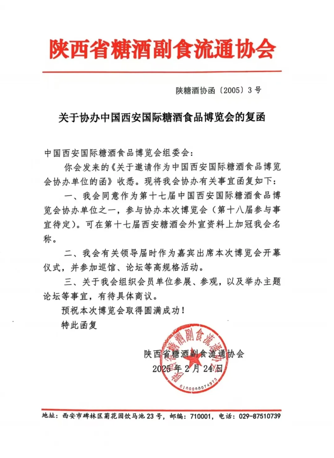 近日,備受矚目的第十七屆中國西安國際糖酒食品博覽會籌備工作正緊鑼密鼓地進行著。經過多方的溝通、協商與考量,陜西省糖酒副食流通協會欣然同意作為本次博覽會協辦單位之一,深度參與并全力支持此次盛會的舉辦。