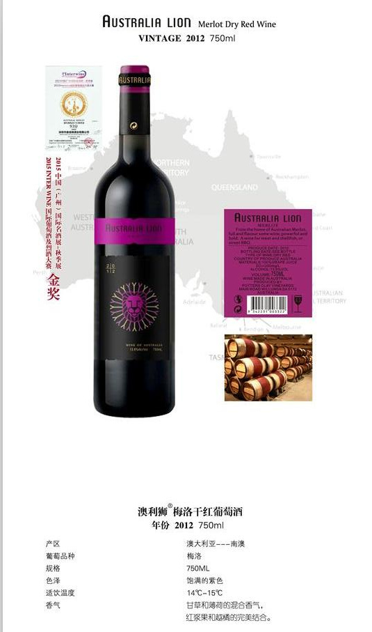澳大利亞南部的澳利獅酒莊AUSTRALIA LION系列;