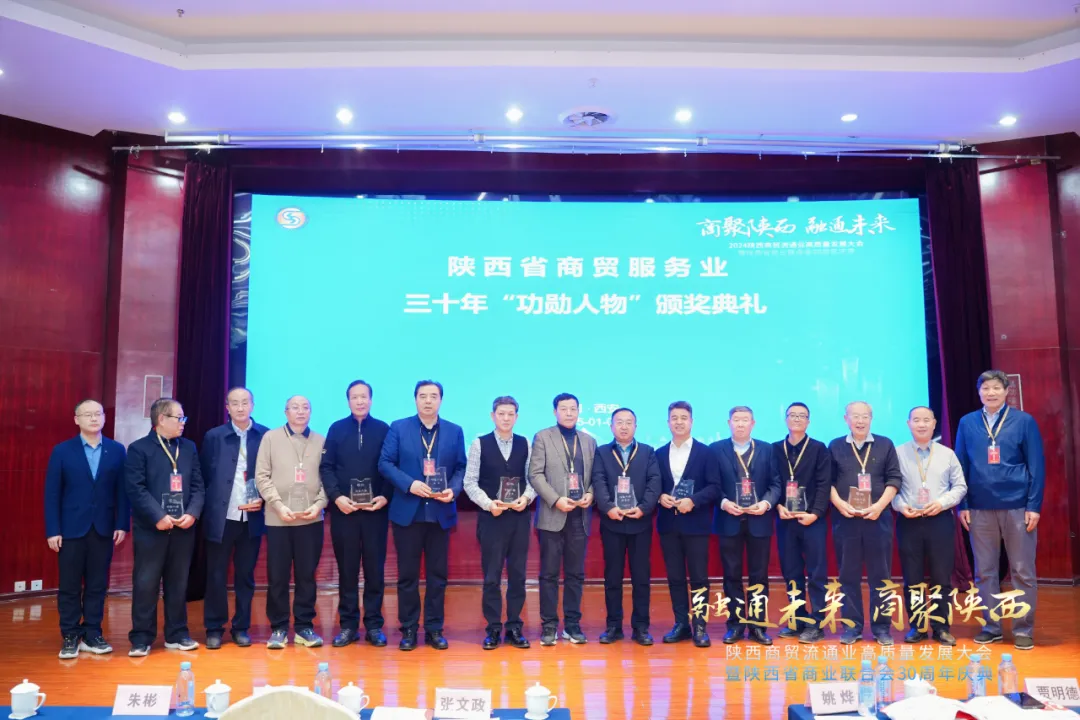 2025年1月9日,陜西商貿流通行業高質量發展大會暨陜西省商業聯合會30周年慶典在陜西雍村飯店隆重召開。此次盛會匯聚了領導與行業精英200余人,共同回顧陜西省商業聯合會走過的30年輝煌歷程,展望未來商貿流通業的發展前景。